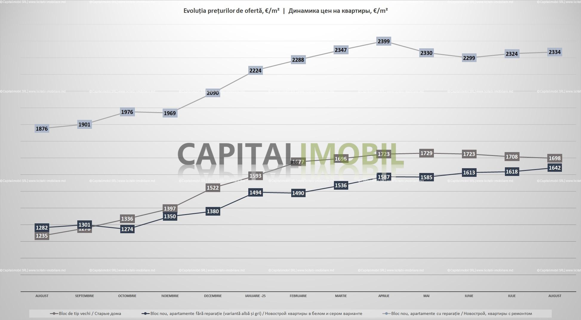Обзор рынка проводился с 28 по 31 августа 2025 года. В ходе этого исследования, были собраны данные о 4 200 квартирах предлагаемых к продаже в мун. Кишинёв, затем информация была обработана и проанализирована для определения средних цен